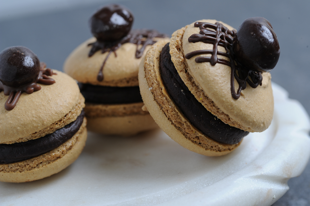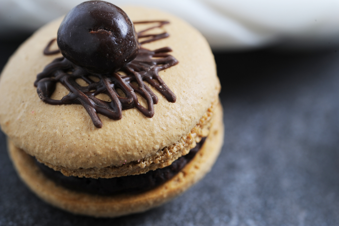 Indulge in the delightful experience of our espresso macarons, each crafted to perfection with a rich and aromatic espresso-infused almond meringue shell. These delicate treats are filled with a luxurious espresso buttercream, delivering a bold coffee flavor that tantalizes the taste buds. Topped with a single edible espresso bean, coated in velvety chocolate, each macaron embodies a harmonious blend of textures and flavors. The crunchy exterior gives way to a soft and creamy center, while the chocolate-coated bean adds an elegant touch and an extra caffeine kick. Perfect for any coffee lover or dessert enthusiast, these espresso macarons are a glorious fusion of French patisserie and coffeehouse decadence.