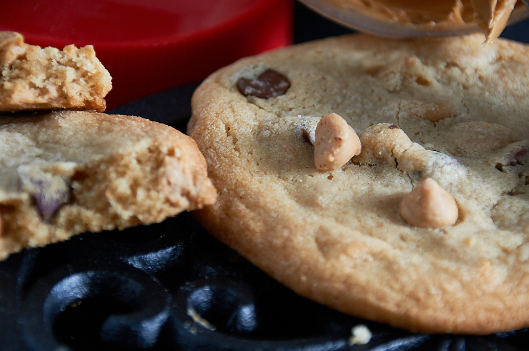 The dough is made with creamy peanut butter, giving each bite a satisfying and hearty texture, while brown sugar adds a touch of caramel sweetness. The addition of Reeses Pieces brings bursts of colorful melty chocolate throughout the cookie, creating a perfect balance of flavors.